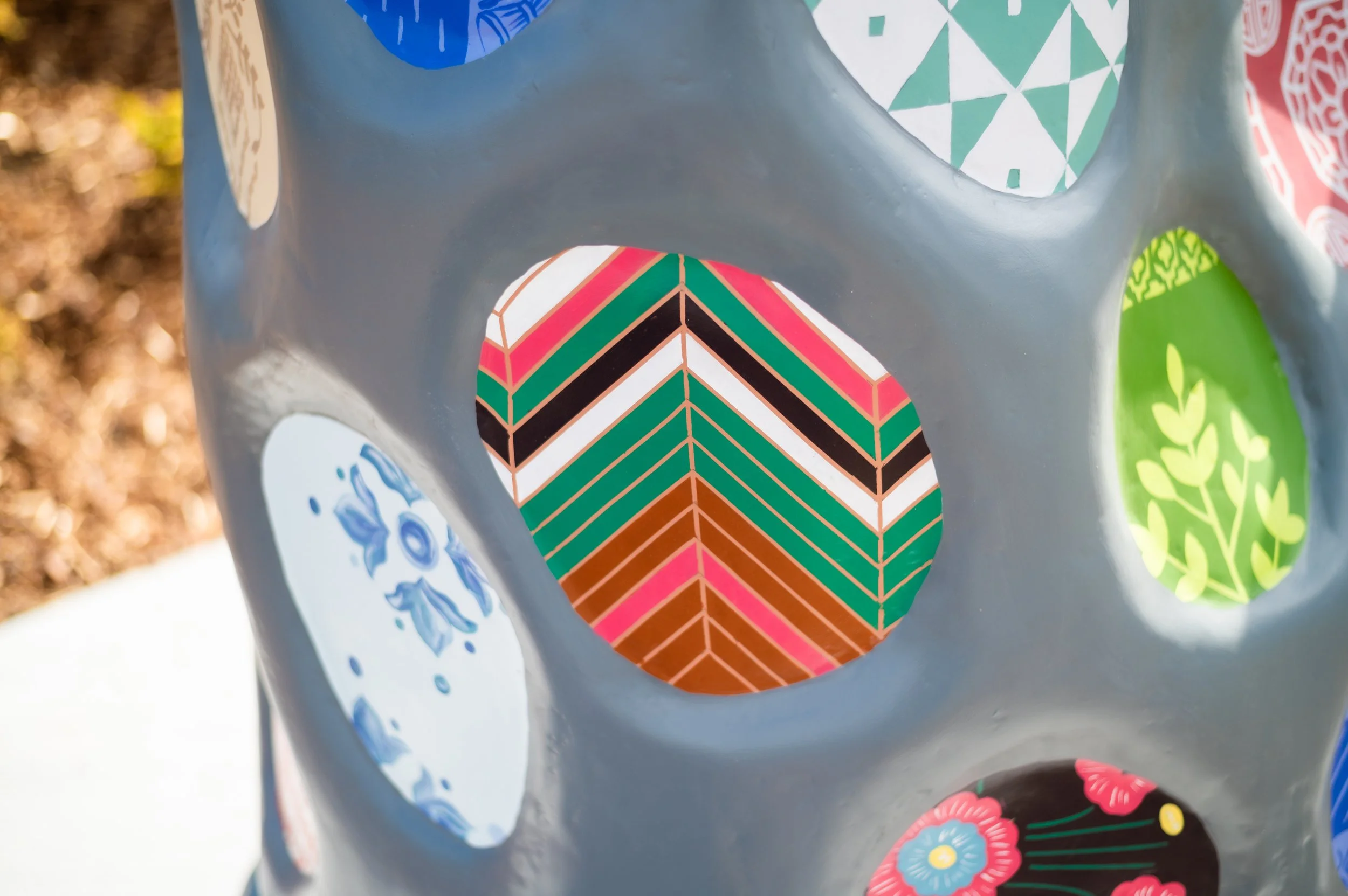 As this is a public sculpture that recognizes diverse cultures, the artist worked with the following NL-based collaborators to incorporate these designs: