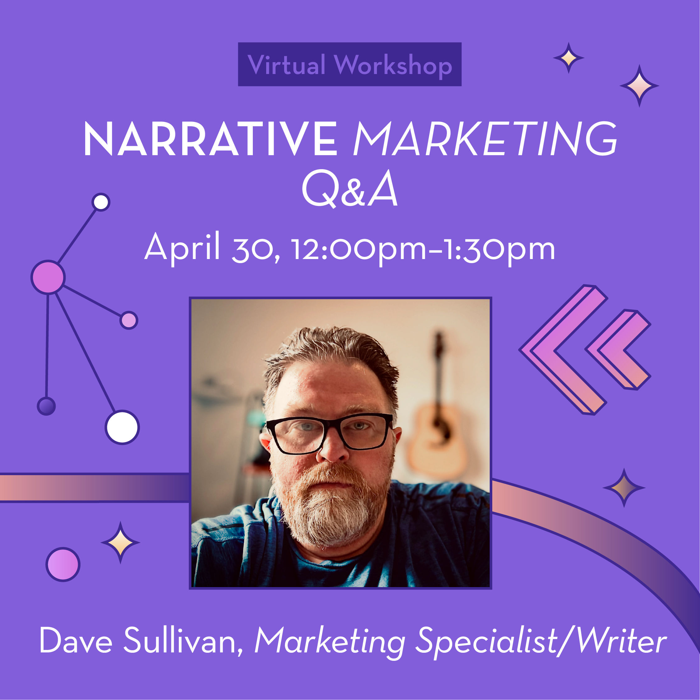Have a burning question about narrative marketing? Join us for a live virtual Q&A with Dave Sullivan, where we’ll dive into your real-world challenges, ideas, and next steps.This session is designed to be responsive and practical, so bring your questions, and Dave will offer insight, strategies, and guidance to help you strengthen your storytelling and marketing approach.Please submit your question in advance to help shape the conversation.This virtual workshop will take place on Zoom.