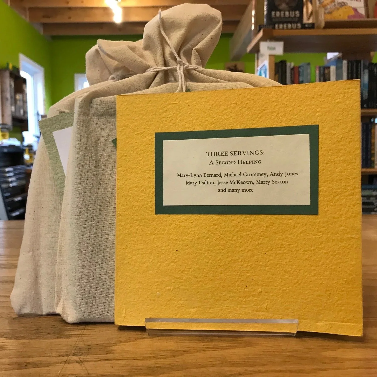 Letterpress-printed and hand-sewn, each copy comes in a pease pudding bag. Please note: this is a varied edition, with cover options of yellow, blue, green, red or burgundy.